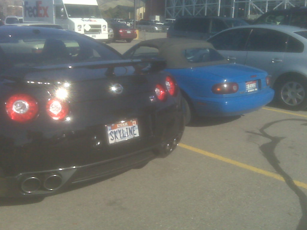 I have come in contact with 3 GTR's within the last 3 days. Attached is a photo of a GTR that was parked next to me as I left school the other day(sorry, cell phone quality). I will admit, most cars do look big compared to miatas, but the GTR looks just HUGE.