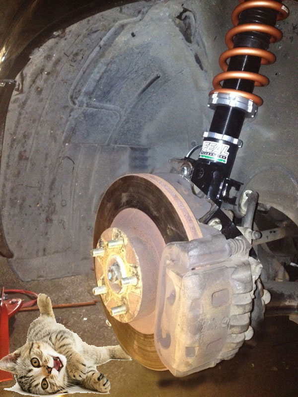 In short, we can not bolt in the upper bottom bolt on the shock body because the knuckle / brake disc thing won't go past the angle in the pic below. We tried jacking it, prying it etc but it wont budge.