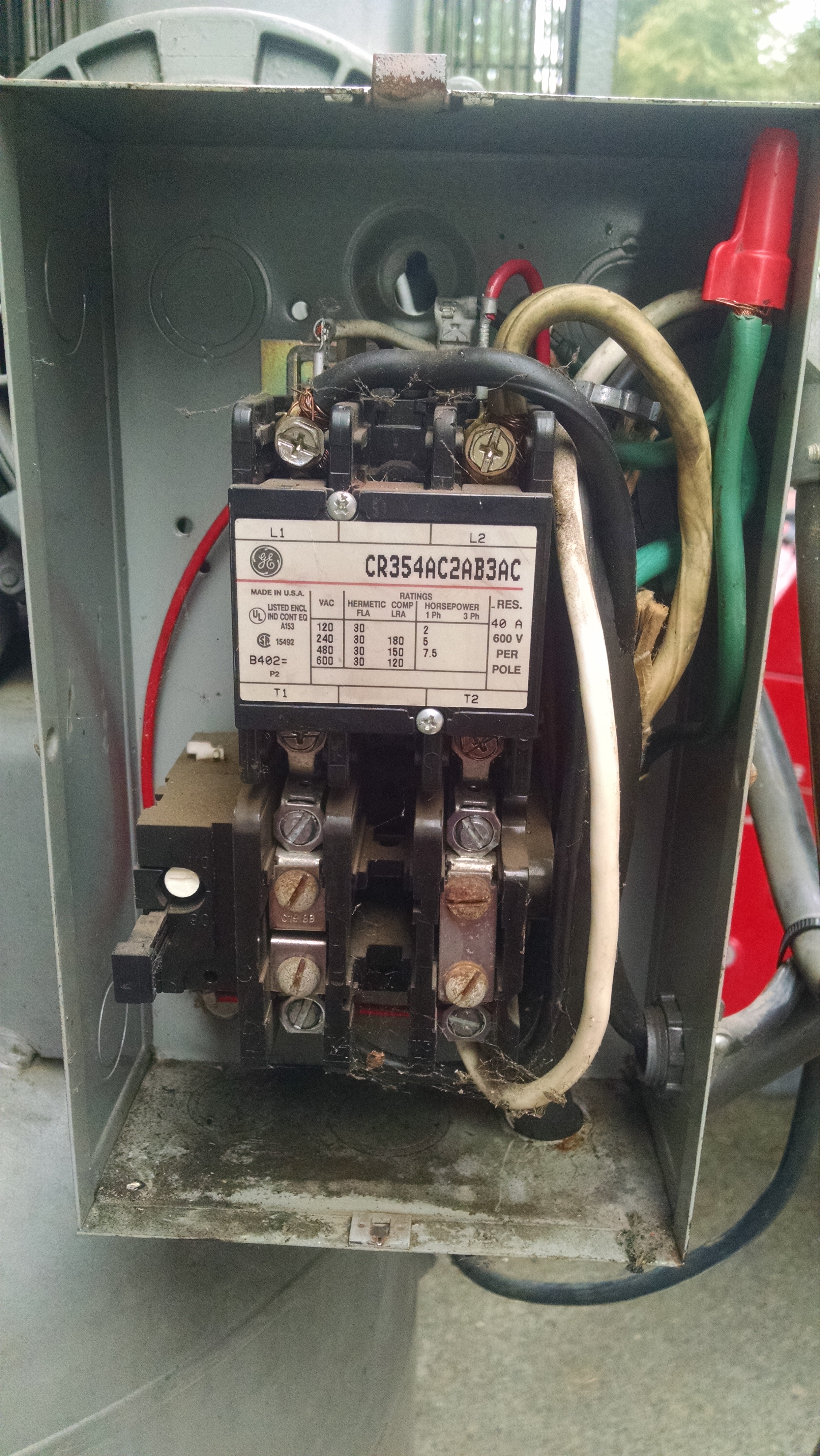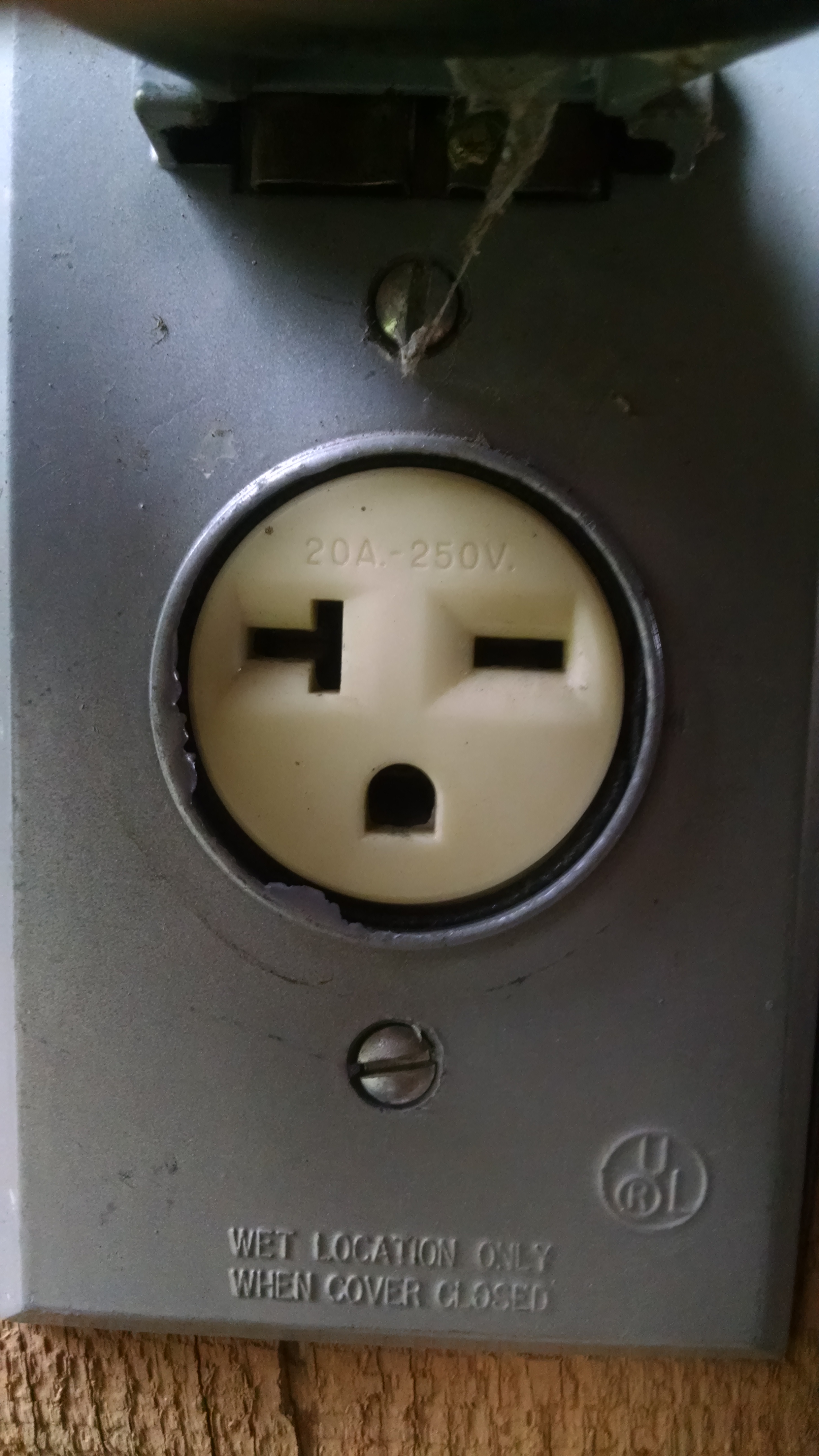 That's probably a AC plug, why else would it be outside? It's probably got an inductive load curve breaker, for motors.