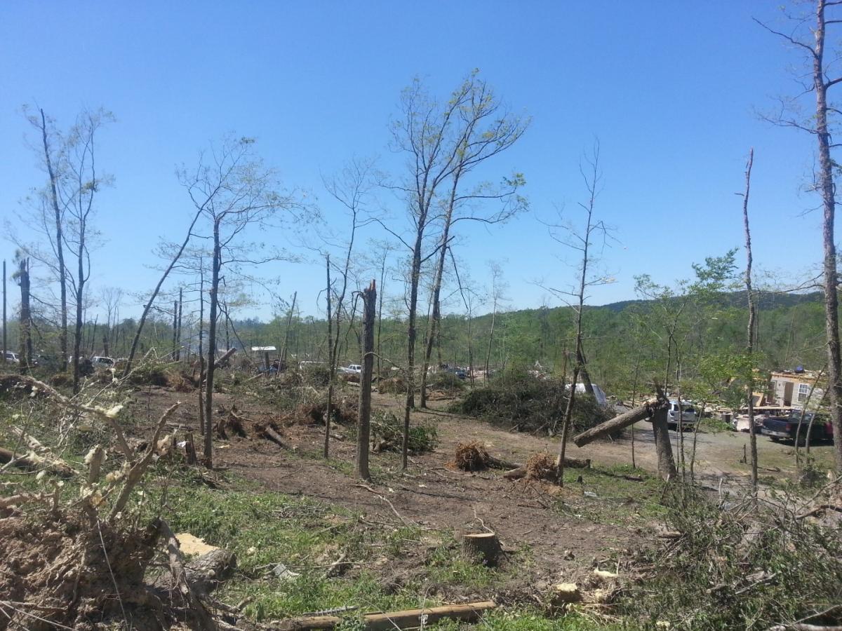 About 15 houses on this strip were rubble. You can't see it in the pic, but the trees are felled different directions on each side of the houses here, demonstrating a direct hit by the tornado.