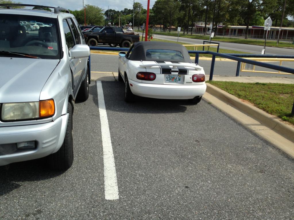 I could have gotten closer. I had to crawl out the passenger side as it was. Felt kinda like an *** because I came back 20min later and she had left leaving me parked like an asshat.