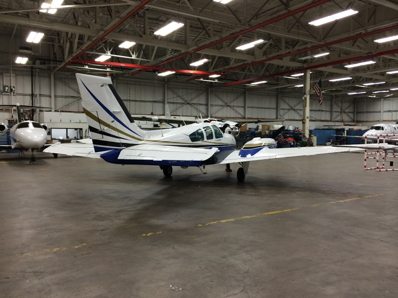 My ride. This is a Beechcraft Baron parked and dripping oil in the Cessna flight test hangar. Had to laugh! Textron recently bought Beech from Raytheon, so the techs, test pilots and I had fun calling it a Cessna Baron.