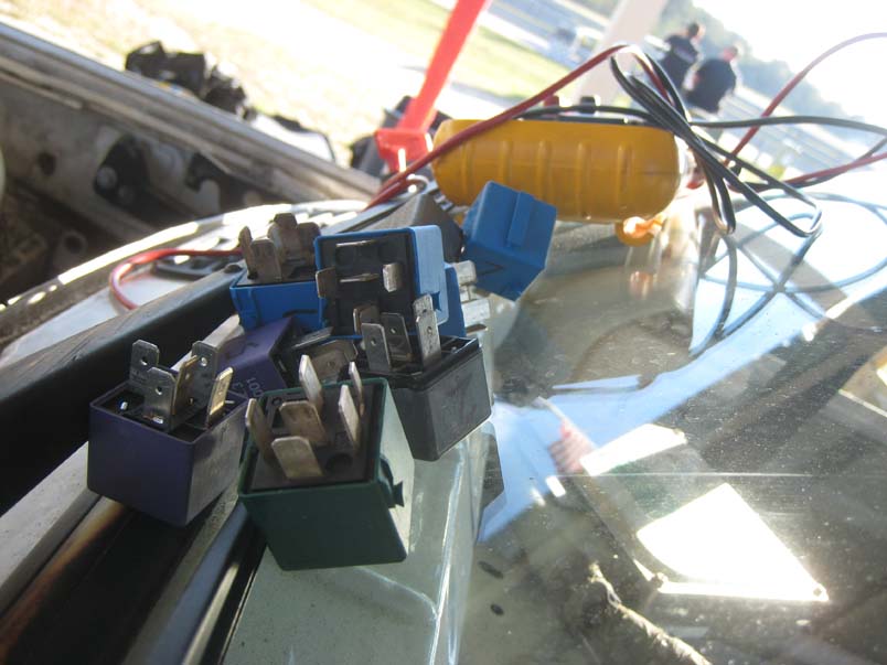 Welcome to German Electrical System Hell! The Bobby Bosch Relay Race is pretty simple, and it really separates the real BMW, Porsche, VW, and Audi mechanics from the pretenders: you take ten standard Bosch SPDT relays (pocketed at the junkyard, of course) and intentionally garboon one of them. When you've found it, the car can rejoin the race. Maybe the coil is bad, maybe the normally-open contacts are bad, or maybe I've been a total bastard and permanently jumped the normally-closed contacts. Whatever, because Bobby prints the schematic right on the relay cover, so picking out one bad one in a bucket of ten should take about five minutes, max. Sadly, some teams don't understand Relay Testing 101, and so it takes them a bit longer than that... and you'd think an E30 team would be really, really skilled at this, eh?
