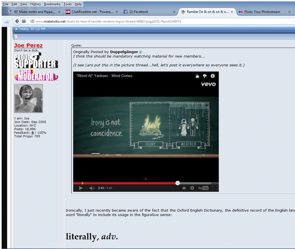 Ironically, I just recently became aware of the fact that the Oxford English Dictionary, the definitive record of the English language, has, as of the current edition, revised its definition of the word "literally" to include its usage in the figurative sense: