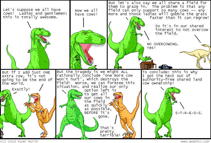 Did I go ahead and hand her the card? Of course I did. Pragmatically, I know that even though it would be "the right thing" for me to pay that $25 out of pocket, my insurance premium isn't going to change one bit whether I do or not. Since the system is already broken, and I am powerless to change it as a lone individual, it's in my best interest to just play along. It's a classic Tragedy of the Commons problem.