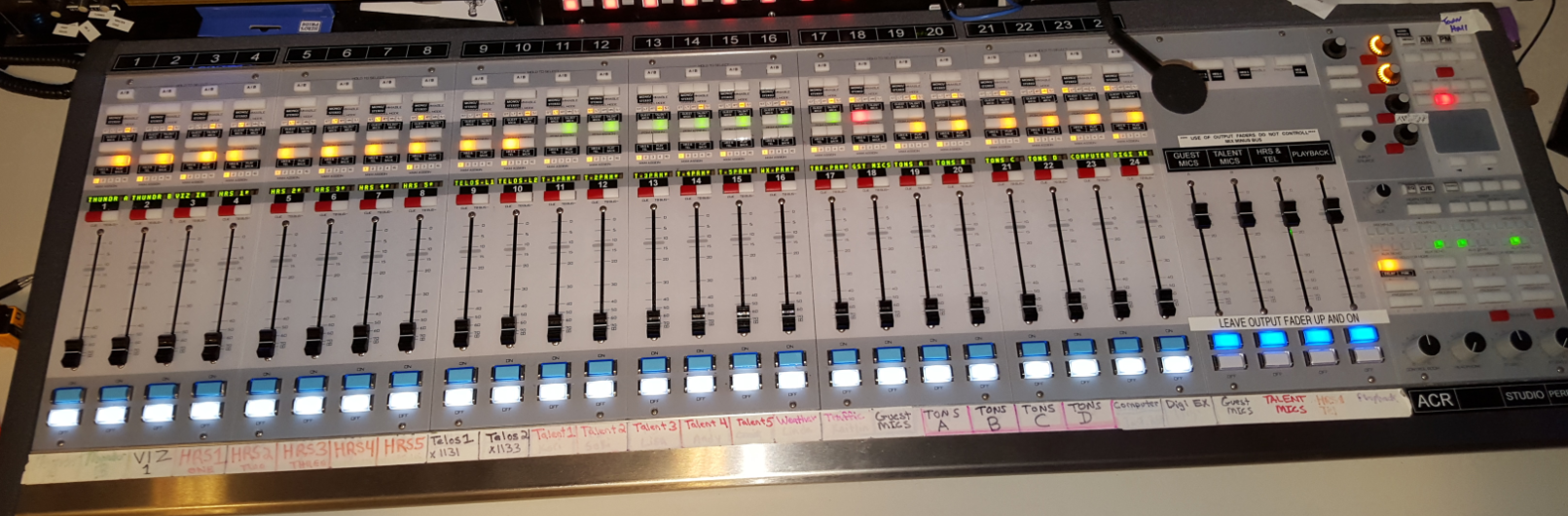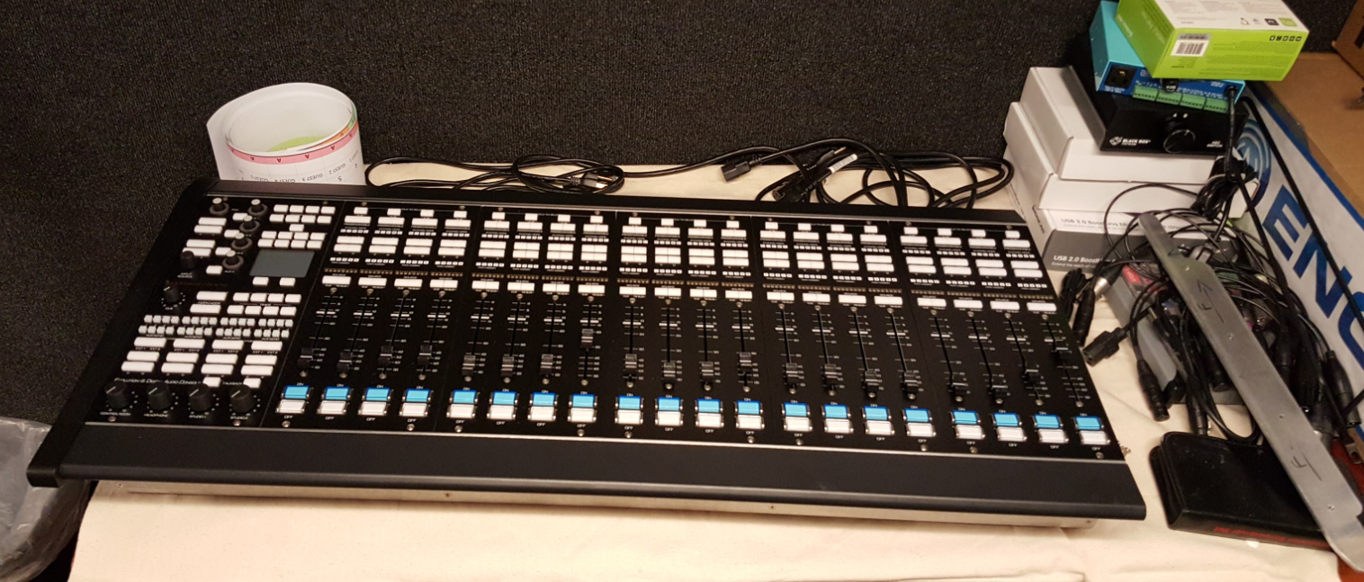 In practice, that means that in addition to herding the local cats, I solve problems like "How do we get a 52 fader console when we only have the budget for a 20 fader console, plus this old 24 fader console lying around, plus this other fader module from another system?"
