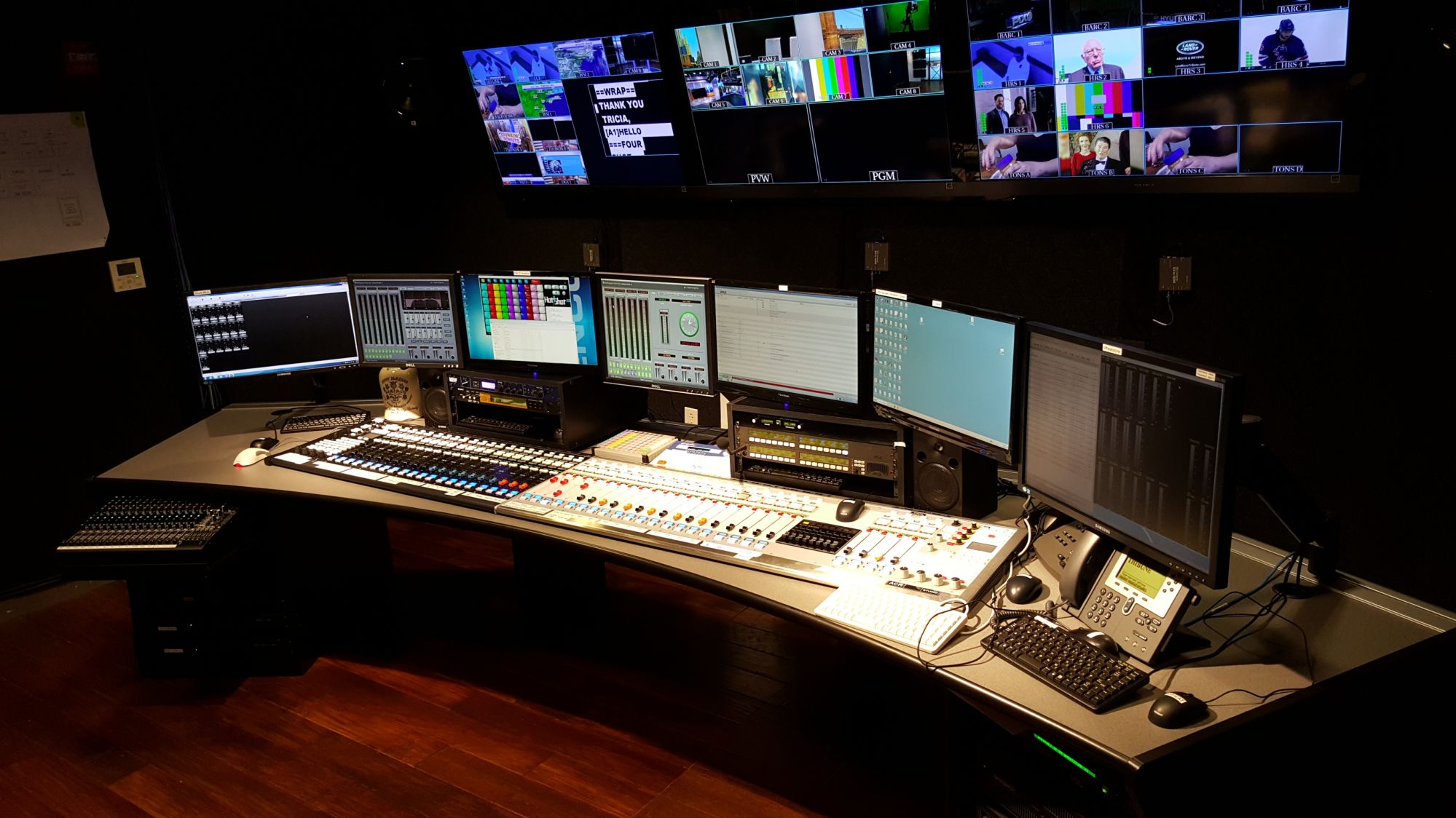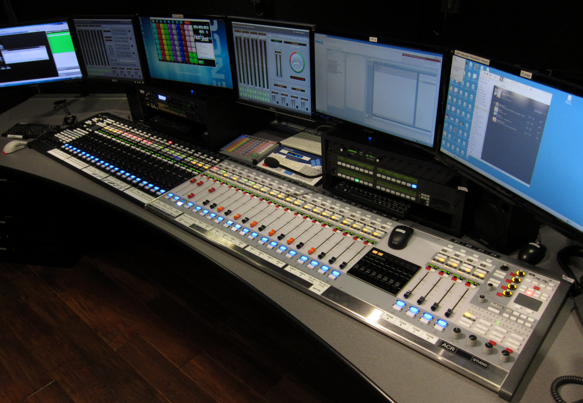 The result is a 52-fader Wheatstone E6 control surface (the largest size they build as standard is 24 faders), including an 8-channel remappable flying-faders module which interfaces with the video switcher. A bit of custom programming, and the two boards function as one.