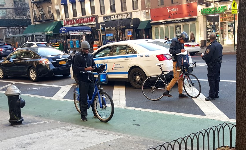 Apparently they decided today was the day. I saw not one, not two, but three cyclists in a single block getting ticketed for riding south on 1st: