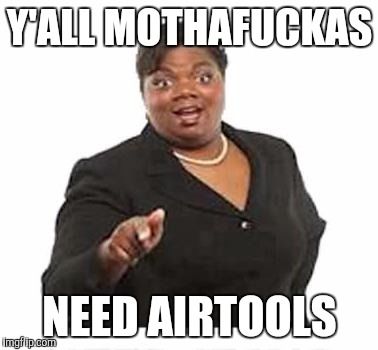 Unless you are in a dedicated shop with a huge *** compressor, with a large *** room to keep it in to keep noise down, then air tools suck horribly.