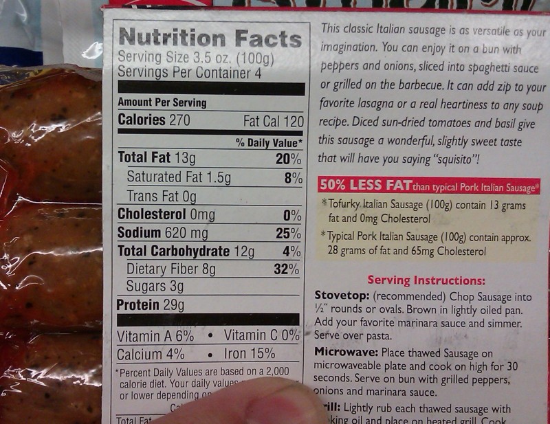 Here we see an organic, vegan, faux-meat product made by Turtle Island foods, which appears to be a popular brand. This particular example claims to emulate an Italian sausage: