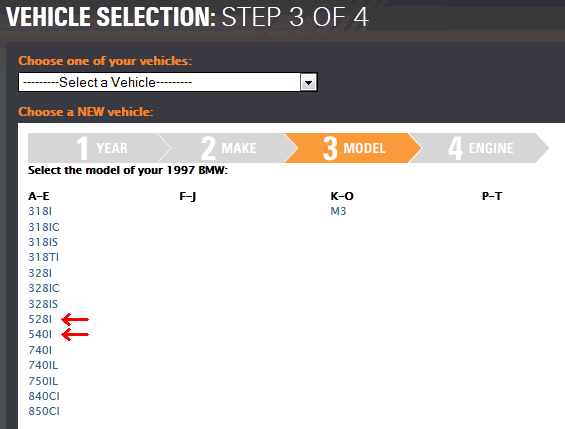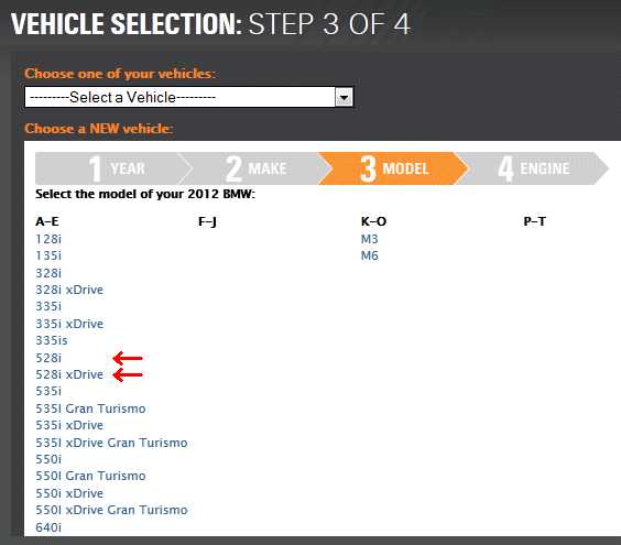 Furthermore, for years in which the xDrive (AWD) system was available, that, too, shows as a unique model separate from the RWD car in step 3, as do the "GT" submodels of each. So not only are the 528 and 535 different models, there are four different models of the 535 in the 2012 model year: