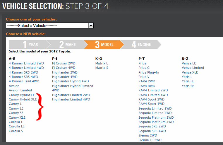 You didn't merely state that autoparts websites consider the Camry XE and the Camry LE to be different models. Originally, you suggested that, in terms of an automotive culture, the Japanese and European automakers "rejected" the strategy of offering more than one engine in a given car model.