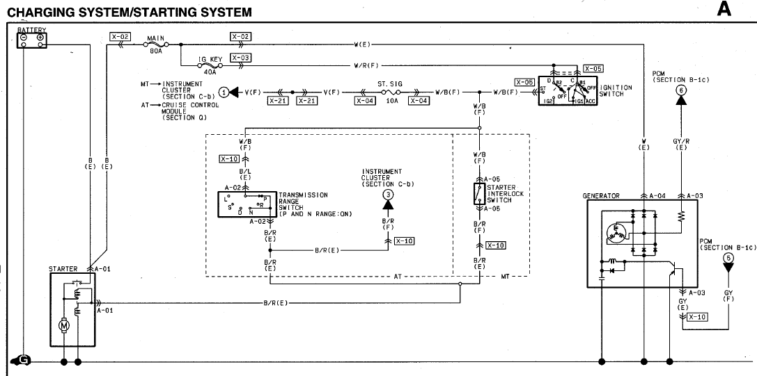 So, make a connection between the B+ and the starter stud, and then replace the white wire running from the starter to the main fuse panel with 35mm wire, then do the same after the 80A main fuse, all the way to the alternator?
