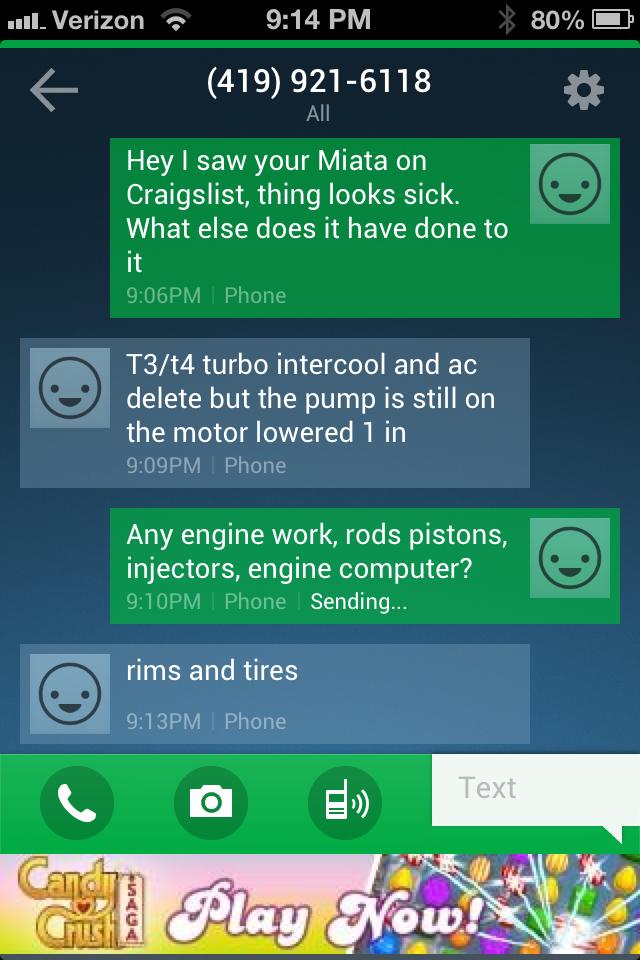 There are a TON of Miatas driving around this town, and unless he's been asking that question to every single person who drives up to his store in one, I have utterly no idea how or why he remembered me in particular as the owner of said car, or even was able to identify the car itself as being a Miata. (I've had people mistake it for all sorts of things, such as a Fiat, an MG, a Triumph, etc., and that's when it's all buttoned up with all of its body panels attached!)