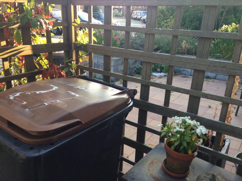 Their bin is right opposite mine. Whatever they throw out isn't in bags.