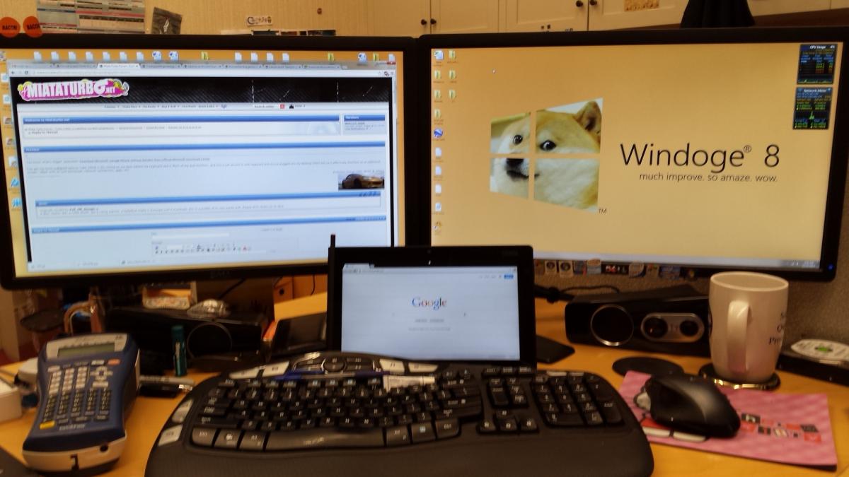 I've got my much maligned Lenovo Tab2 (Win8.1 32) sitting on my desk behind my keyboard and in front of my dual monitors, and now I can access it with keyboard and mouse plugged into my desktop (Win7 64) so it effectively functions as an additional screen. Albeit with its own processor, network connection, apps, etc. There is very slight lag with the mouse due to the wifi connection, but that only seems to be an issue for the first couple seconds when you first cross over to the second device. It syncs up perfectly after that.