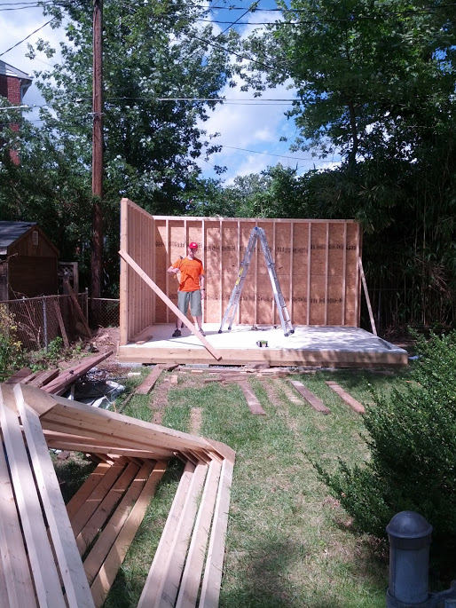 Here is a photo of the son I fathered helping me with the shed I built.