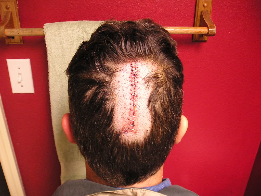 I had a brain tumor removed. Under the stapled area they sawcut a 2x2 inch section of skull as an entryway. It was a joyous experience. I would hate to have to go through what Mark is enduring now.