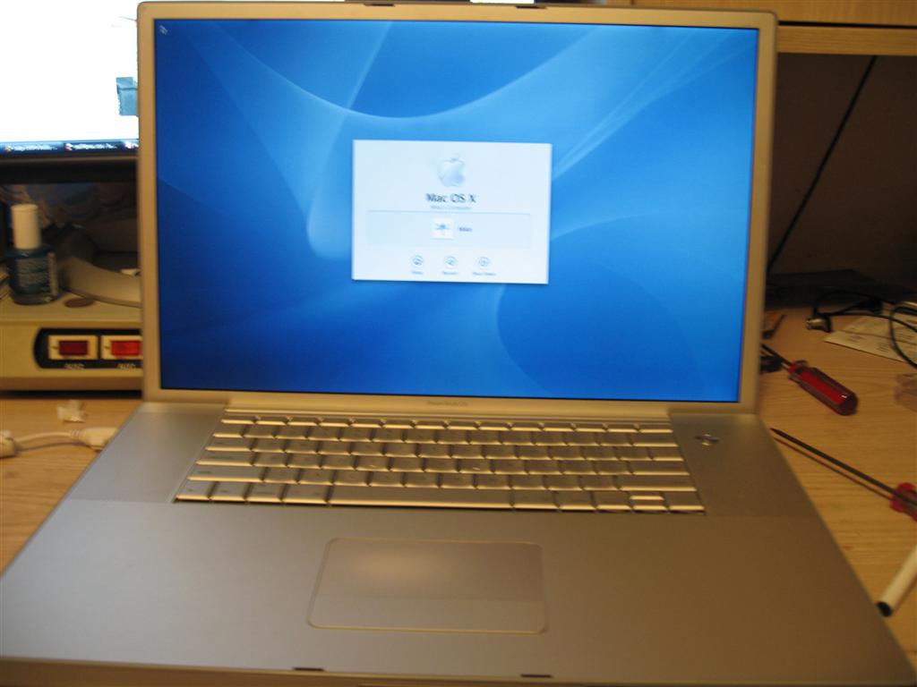 Apple Powerbook, the 17 incher. The metal one, with the 1.5ghz ppc processor.