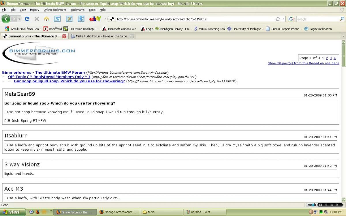 EDIT: Link doesnt work without registering. The topic is a poll with the title " Bar soap or liquid soap-Which do you use for showering?" and not one member asks wtf is wrong with the op. Nuff said.