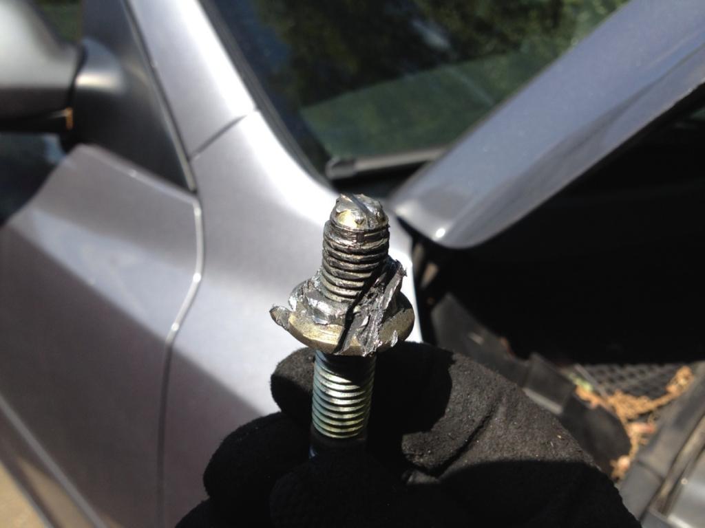Then I thought that since the stud was topped with an external-Torx head, I would buy an external-Torx socket and just remove the stud and nut together. The head of the stud sheared off.