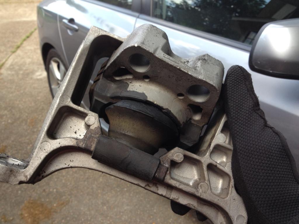 Well, one of the nuts won't come off. It's a 17mm nut that threads onto a stud that threads into the engine block. The engine mount slide overs the stud, the nut tightens down.