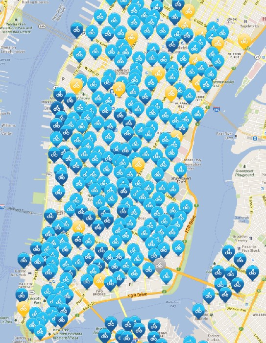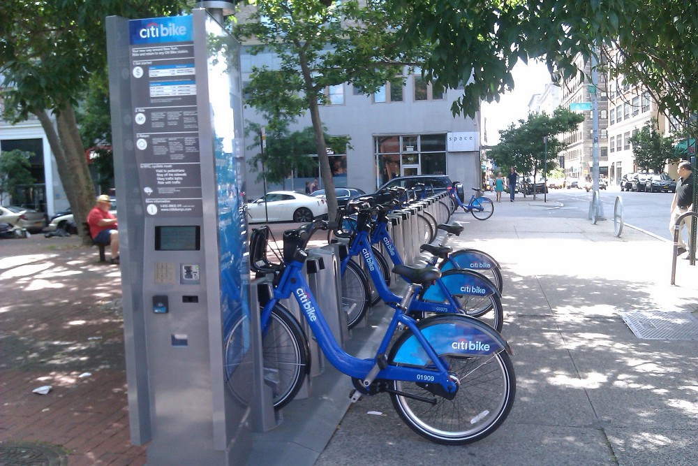 Yes, Citibike: the quick serve rent-a-bike system recently unveiled in NYC. You can purchase annual memberships, or you can just walk right up and purchase a 24 hour or 7 day pass with a credit card. Just pick your bike, ride it to wherever you're going, and jam it into a docking station at your destination.