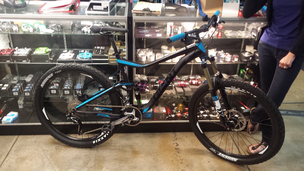 It's a 2015 Giant Trance X2 650B. Having the shop upgrade a few things on it before it leaves today. Mostly the dampers in the fork and shock, and a rock shox reverb seat post. Stoked!