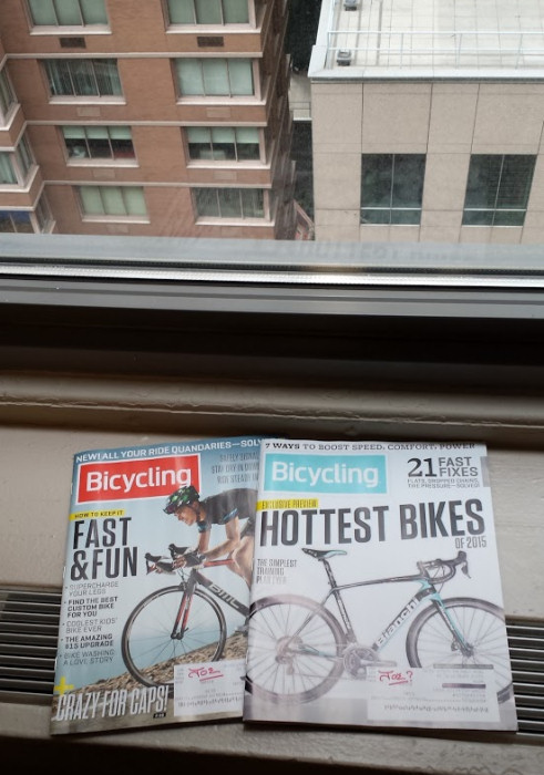 At work, someone who is no longer with the TV station was a carbonlusting enthusiast who subscribed to Bicycling Magazine and is unfamiliar with the concept of a change-of-address form. So the magazines have been coming in with no one to deliver them to.