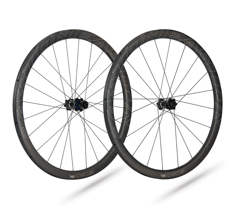 Easton EC90 SL clincher disc. 28mm outsaide width, 38mm depth, Good to 120psi tubeless, no spoke holes to seal (no tape). 100x15 front, 142x12 rear. Hutchinson Sector 28's