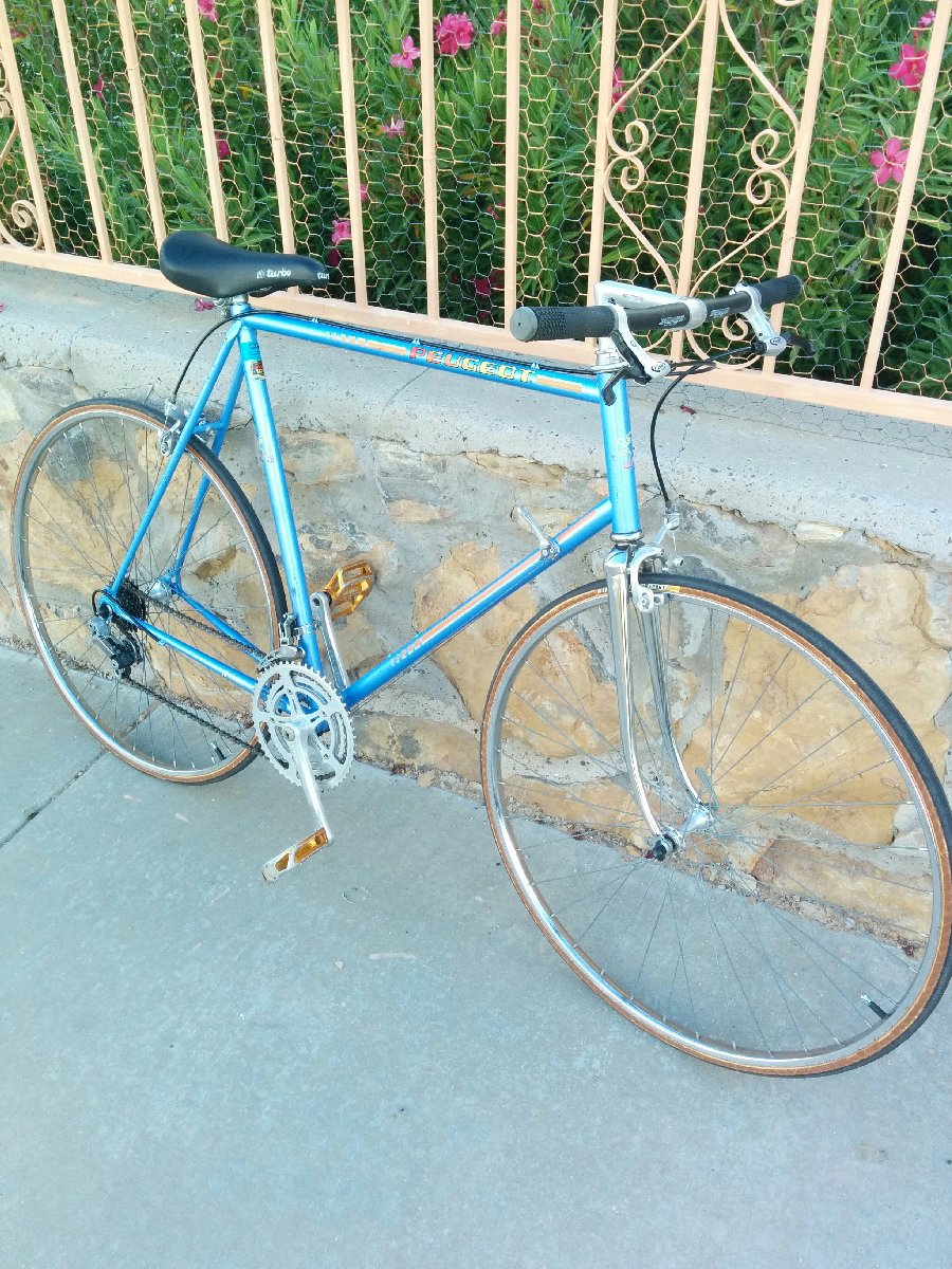 I friend recently gave me his old '80s Peugeot Carbolite 103 road bike. This bike is surprisingly light for the amount of steel parts it has. It rides really nice.
