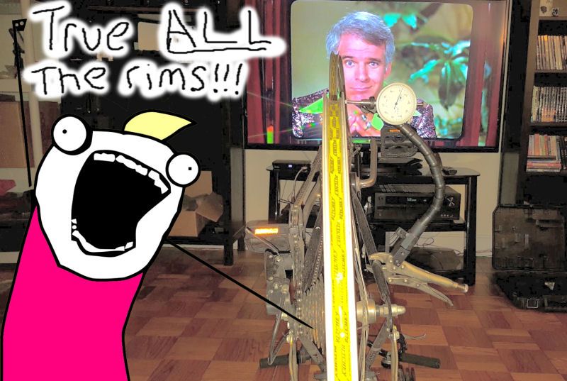 I hate truing rims... Possibly the most tedious task ever undertaken by man, and I was one of those kids who keyed page after page of raw hexadecimal machine-language code into a C-64 out of Compute's Gazette magazine pages back in the 80s.