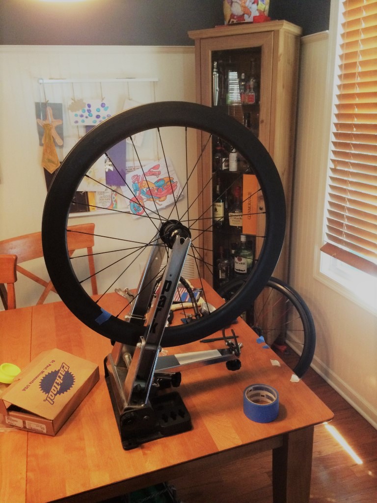 My 55mm light bicycle parts showed up earlier this week. I must say, Light bicycle's customer support is pretty awesome. Besides a standard build front wheel with CXrays, they sent me the proper length/qty spokes and nipples for me to lace to a Powertap G3, for much much less than individual CXRays go for here in the states, let alone a bag of 20 x 2 that all LBS' could supply. However, the 14mm sapim nipples they sent (and used on the front wheel) have dimples in them that grab the spoke thread, making it more of a pain in the *** to lace. I have spoke prep, let me rely on that please.