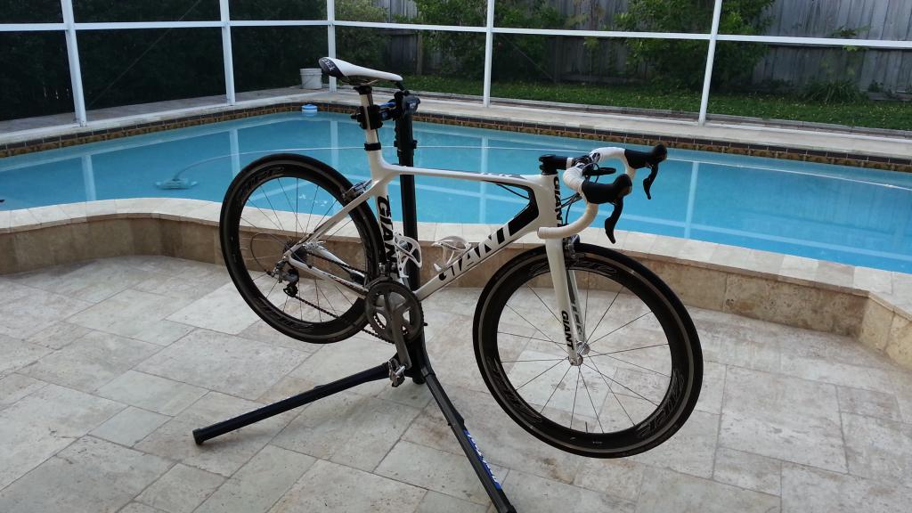I wasn't done adjusting the saddle with the new crank arms. The angle and setback are adjustable off that one, single bolt so I screwed the angle when moving the saddle back. I'll jack with this tomorrow when it's not raining.