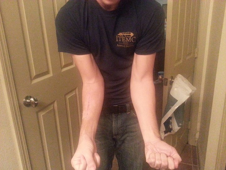 Its because you have no muscle left in your forearm...unless you were like that before.