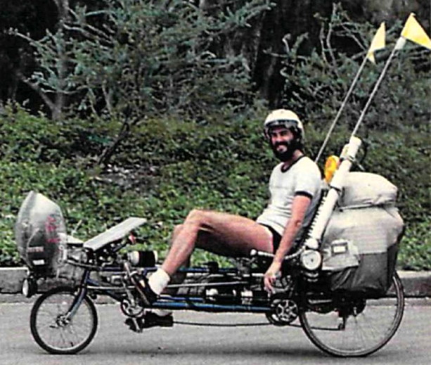 While on the road, he also carried a laptop computer, HAM radio, packet modem, solar charger, etc., which allowed him to "blog" the entire journey on Usenet, in real-time, from the road.