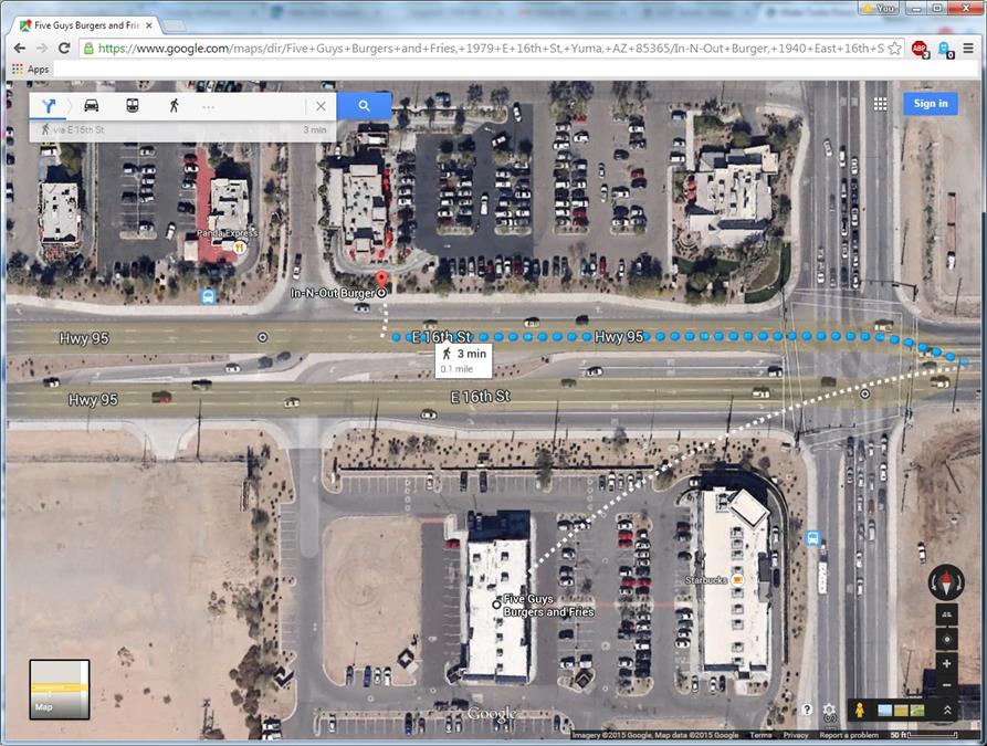 In the god forsaken land of Yuma, Arizona there is but one bright spot. Its the only place on the planet (that I am aware of) where there is an In N Out Burger across the street from a 5 Guys.