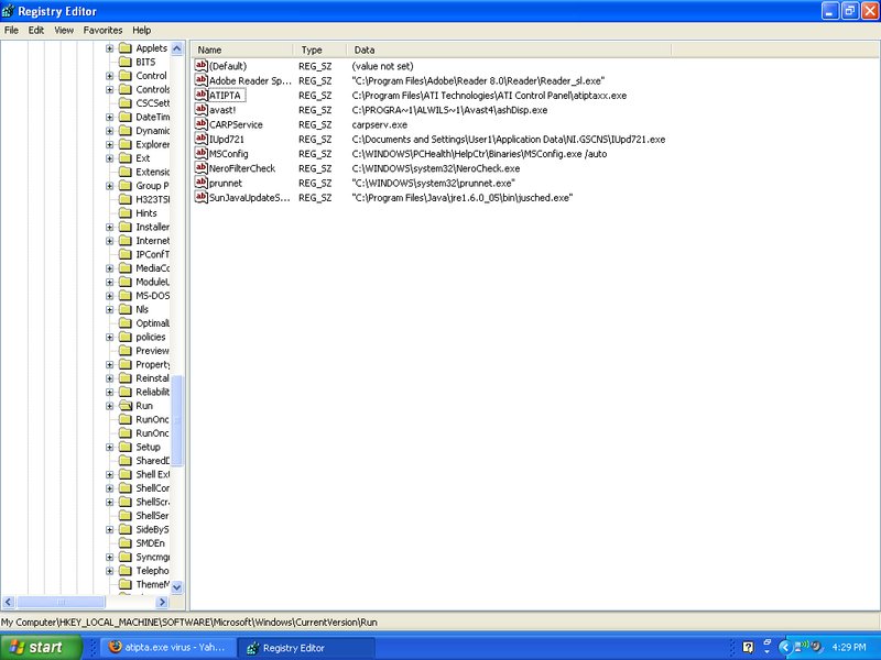 HKEY_CURRENT_USER\Software\Microsoft\Windows\Curre ntVersion\Run\”Antivirus” = “%ProgramFiles%\Antivirus 2009\Antvrs.exe”