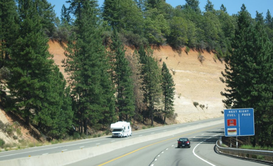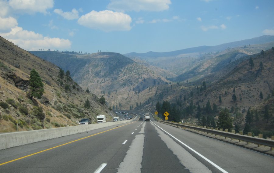 And I gotta tell ya, without the trailer and car hitched to the back, these gas-engined Penske trucks are actually pretty damn nice to drive! Not having all that dead mass on the bumper makes a huge difference not only in acceleration and hill-climbing, but in cornering stability and braking as well. Since I have the load extremely well-secured in the back, I've really been testing the limits of handling in this truck, and I am impressed. In the twistier sections, I was pulling away from passenger cars at a pretty fair clip.