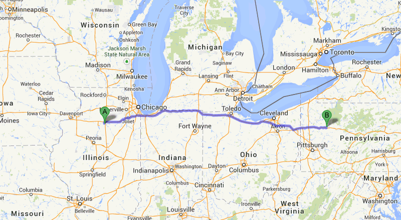 IIRC that highway that runs just south of the Michigan border is a toll road/highway. Just thought i'd pass along that info if you don't know. Sorry if you already knew this.