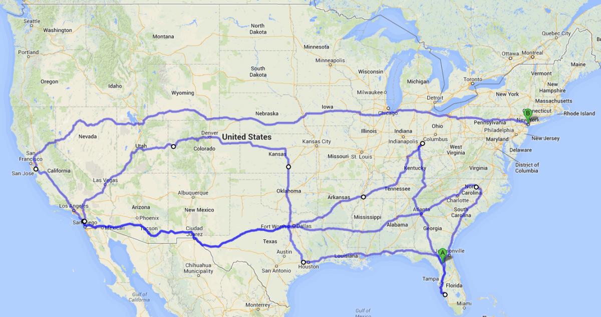 So I sat down and plotted all of the long-distance moves which I have made, starting from the time I graduated college: