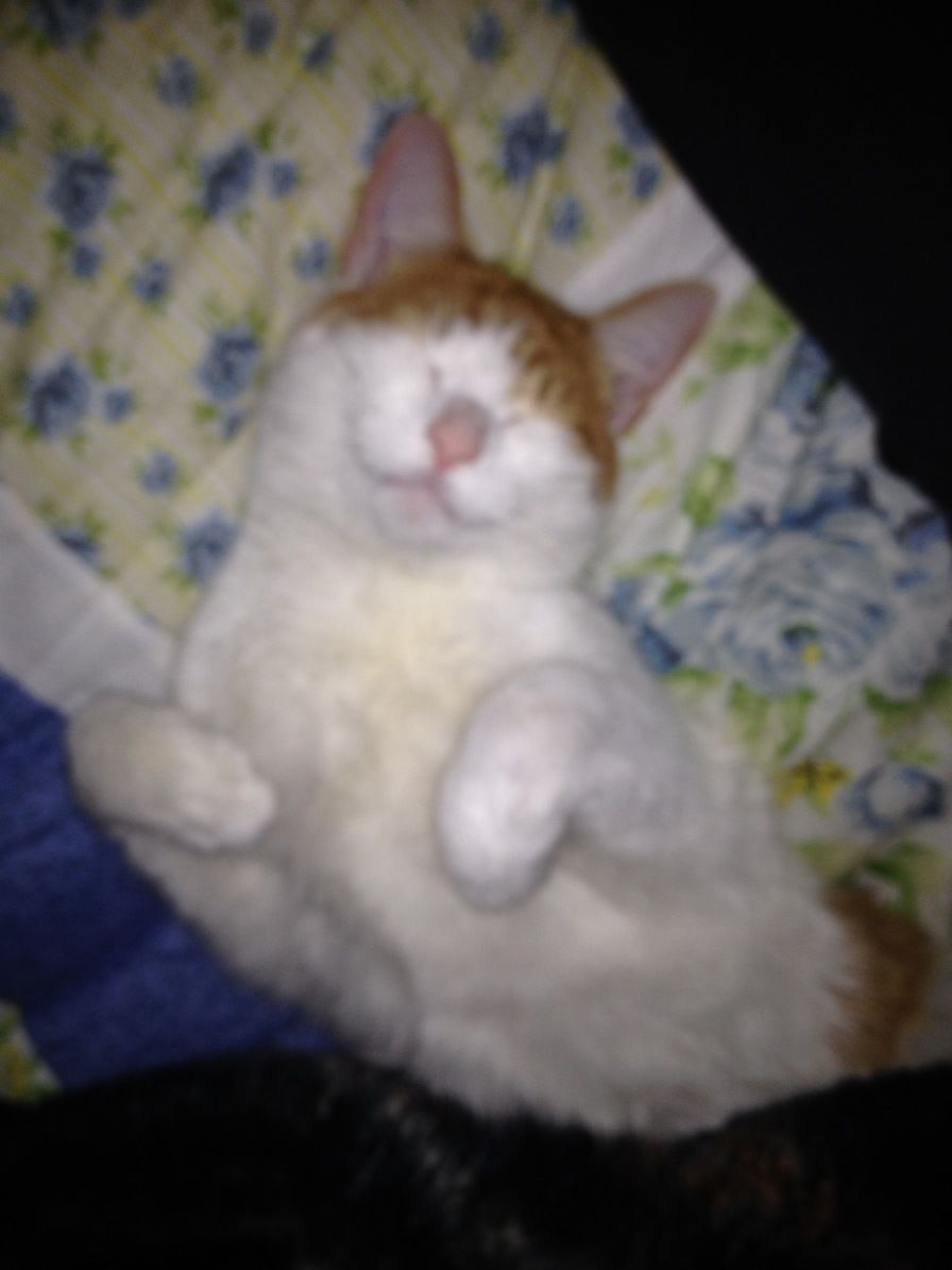 The morning after we rescued him from the streets. He appears to be smiling.