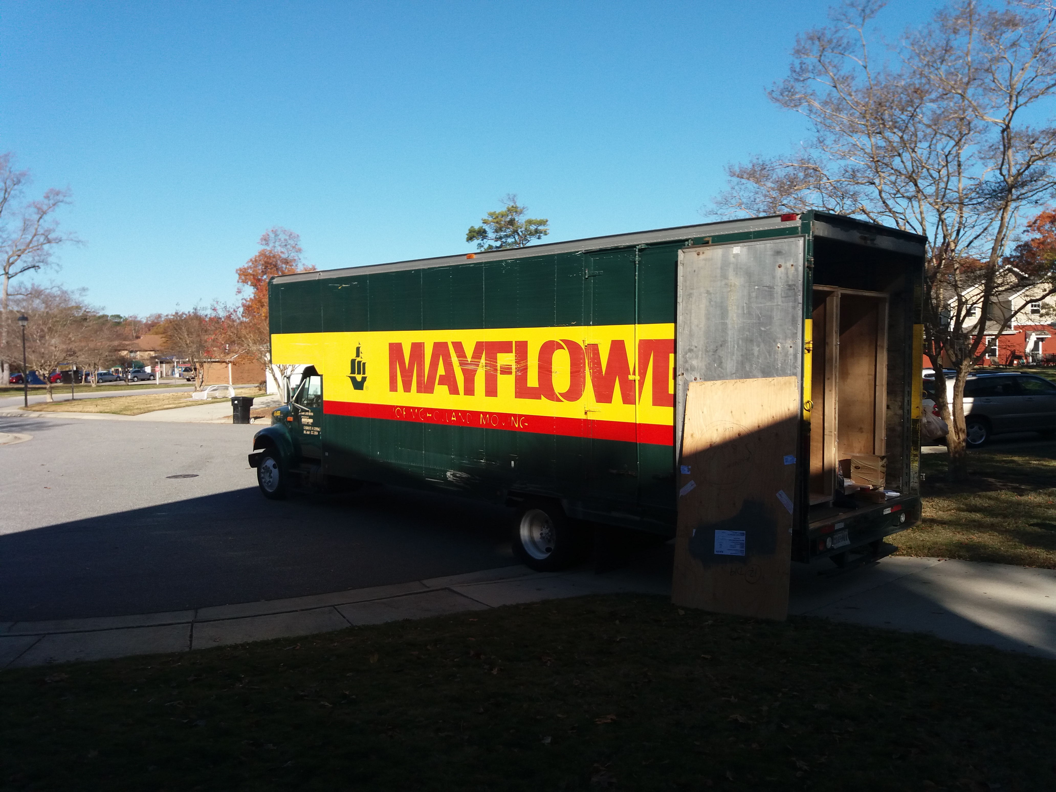 It's getting real now. Our first shipment went out last Friday... 500lbs of "express" that goes air freight and should be delivered to our new base house the day we arrive on island. Only one of the boxes on the truck below will have our stuff in it.