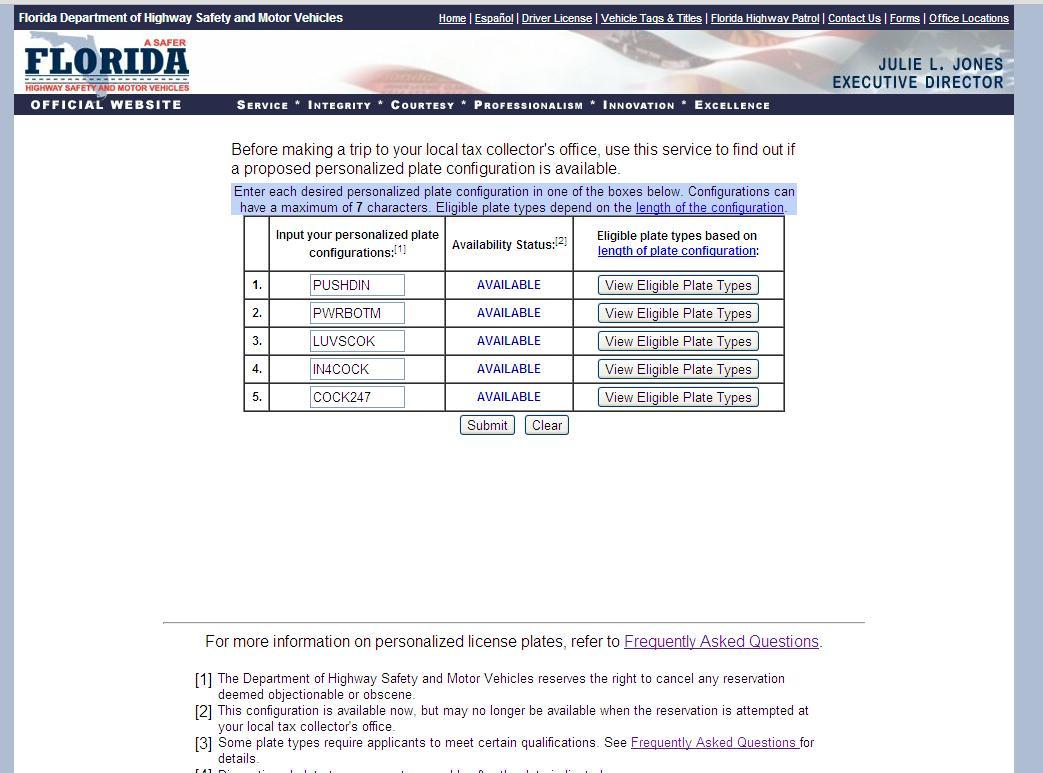 I'm just putting this out there in case PUSHA is interested... after a quick check, the following are up for grabs in Florida.