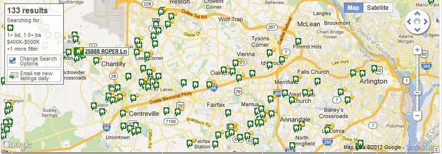 The western portion of Brain's boxed area is going to be a nightmare for commuting. I-66 is liable to be a cluster ---- at any time, for any reason, or for no apparent reason whatsoever. If you live any farther than 5-10 min from the farthest stop out on the orange line (Vienna/Fairfax-GMU) and have to commute into DC you will hate your life 5 days a week. Houses up near Tyson's Corner or Wolf Trap are not even remotely in the given budget. You have to go out to Reston or farther before prices start falling, and for someone moving there now that leaves no commute options. Metro silver line out 267... your trusty transportation planners say 2013? I'll believe that when I see it.