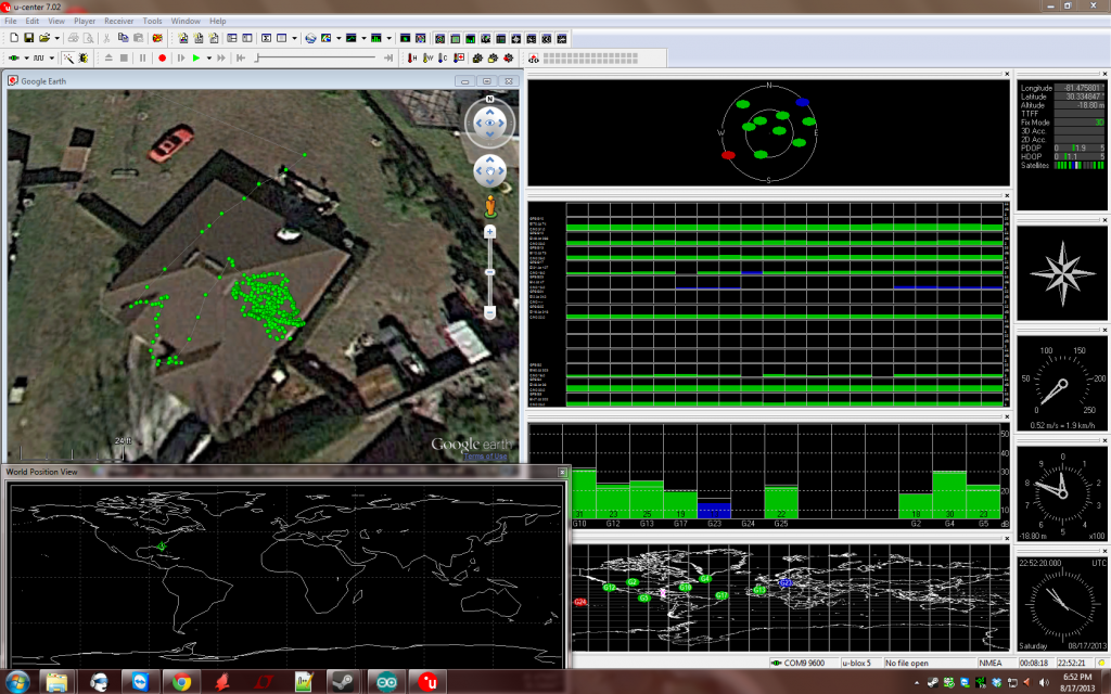 You can see the path it took while finding satelites before it made the cluster over my bedroom in the house to the right. I'd say not bad for being indoors and some say my house is made of lead when it comes to getting signal from within.