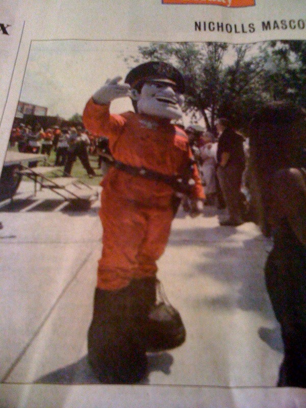Just saw this in the paper. So a few years back the NAACP decided that Nicholls' Confederate colonel mascot was "racially insensitive". So what do they do? They eliminate the mascot altogether. Many years later, this is what they come up with. I couldn't have written this any more hilariously. The committee based solution to the racially insensitive mascot is a mix between Bison from Street Fighter and a **** tank commander. Way to go NSU.