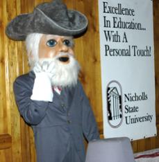 The old mascot was named Tillou, after the middle name of the university's founder, Francis T. Nicholls. The founder was, by the way, a brigadier general in the Confederate army. I'm not one of those "Southern PRIDE!" nutjobs, but I don't have a problem with a Confederate looking mascot representing a southern school that had Confederate roots.
