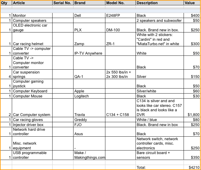 they made off with my imac, digital camera, 42" plasma, guitar, jug of money.