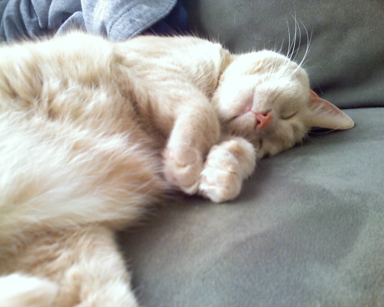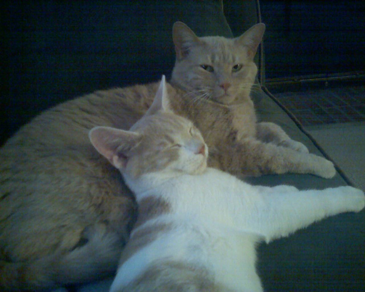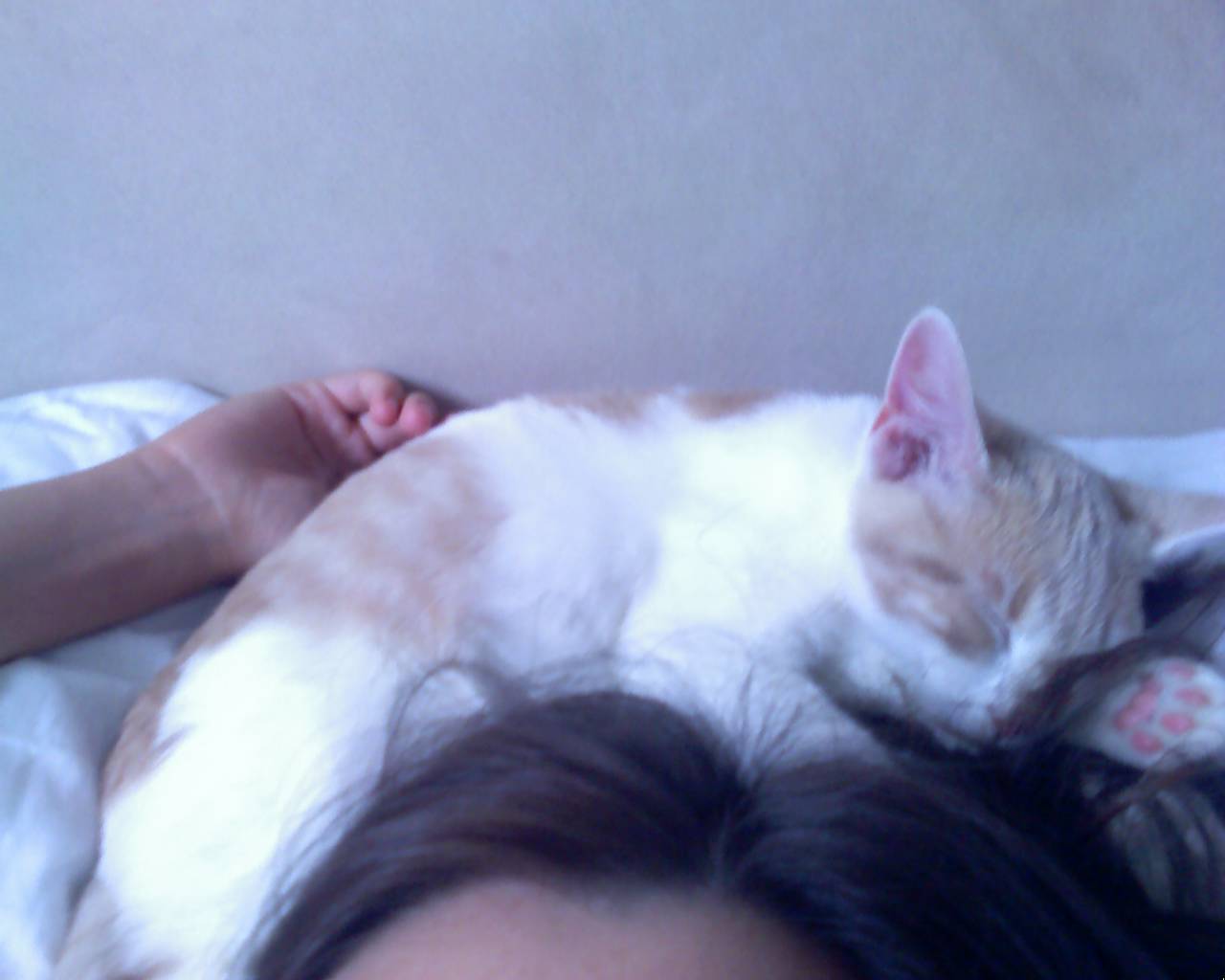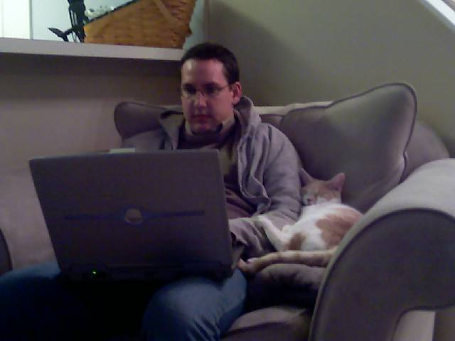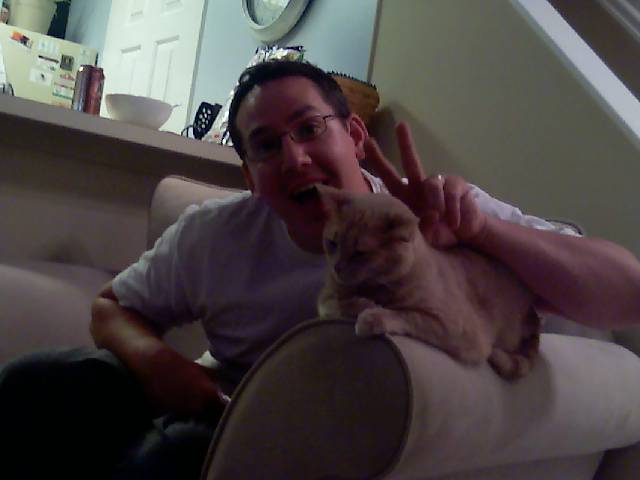 OK, I thought this was a gayest thread of all time but I couldn't resist posting a picture of me and my cat (his name is Grayscale like a computer image). My wife snapped this while we were taking a nap.